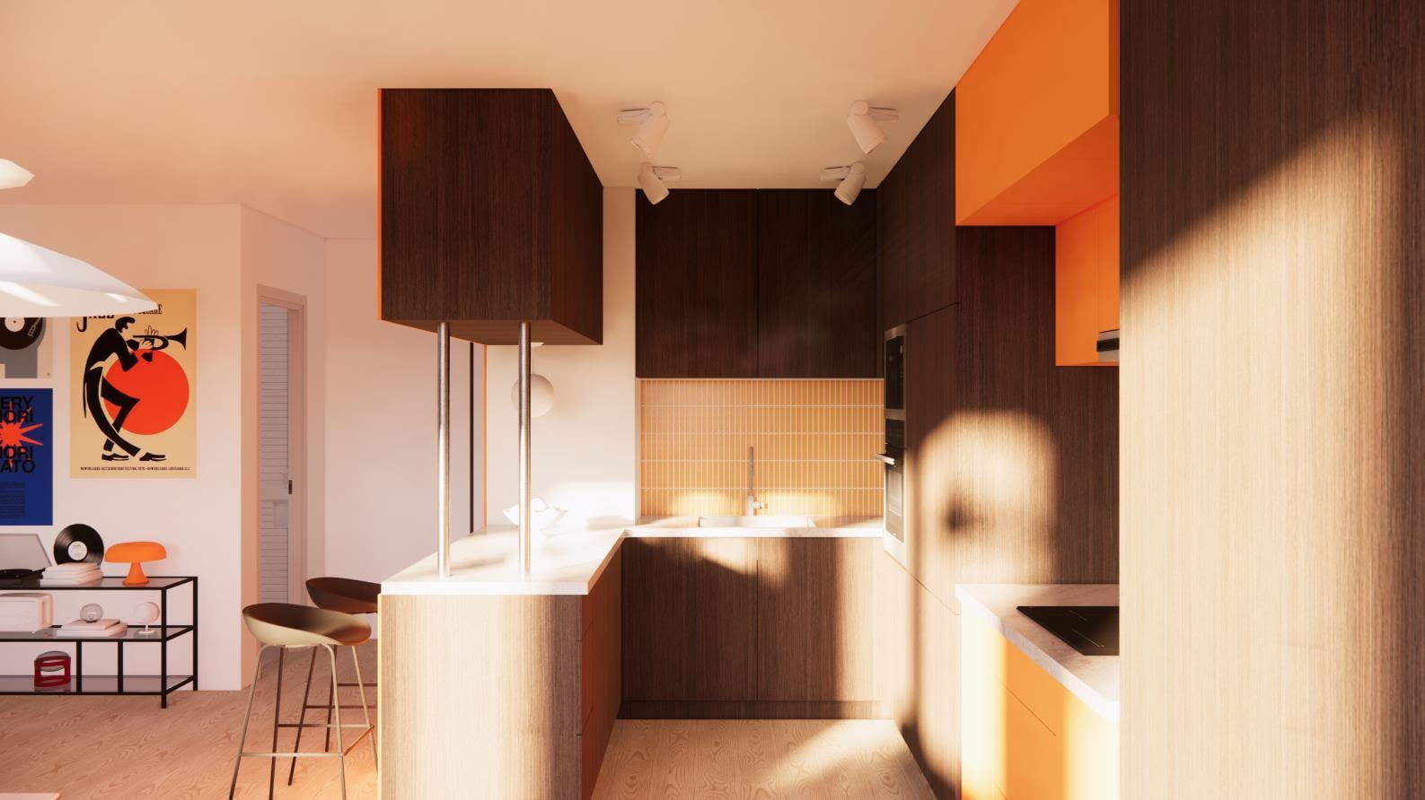 A residential interior redesign in a Sarajevo high-rise — open-plan living with carefully considered material transitions and natural light.